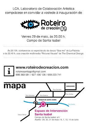 Intervencións dende balcóns, galerías ou terrazas, espazos públicos e privados. NOLO SUÁREZ, MANOEL BONABAL, MARÍA MEIJIDE, MARIA CHENUT, MARCOS ZACARÍAS, LA FABIOLA, e REINA D’HOORE . Cidade histórica. Durante todo el evento ROTEIRO 2009